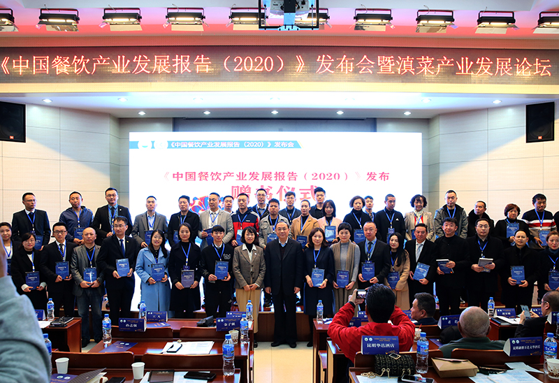 12月18日,由世界中餐业联合会和beat365官方网站共同主办的《中国餐饮产业发展报告(2020)》蓝皮书发布会暨滇菜产业发展论坛在beat365官方网站隆重举行。世界中餐业联合会常务副会长、餐饮产业蓝皮书主编邢颖,学校校长丁文丽,餐饮产业蓝皮书执行主编、普洱学院副院长于干千,中国社科院财经战略研究院服务经济与餐饮产业研究中心主任赵京桥,云南省市餐美协相关领导、世界中餐业联合会会员代表、省内外餐饮学科专家学者、云南省知名餐饮企业代表等百余人参加会议。发布会由副校长王凡主持。