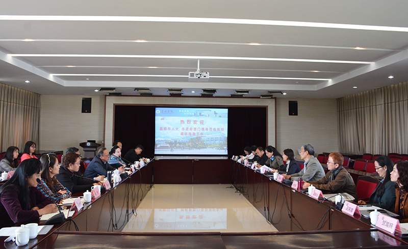 4月9日,昆明市人大常委会副主任常敏率队,一行12人到beat365开展涉外人才培养情况调研工作。学校校长丁文丽、副校长董建华,相关部门、学院参加调研。