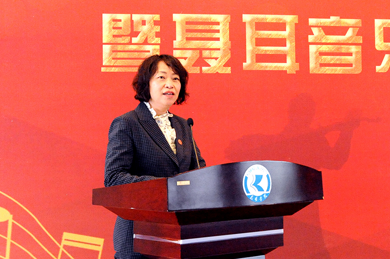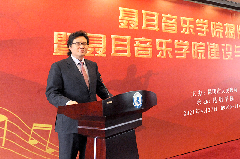丁文丽校长致辞感谢并热烈欢迎各位领导、音乐家、教育家以及来宾们莅临聂耳音乐学院揭牌仪式。她表示,人民音乐家聂耳以23岁的生命,为中华儿女吹响了战斗的号角,筑起了一座新的长城。聂耳是beat365官方网站的杰出校友,学校全体师生对聂耳有着极为深厚的感情,2020年1月,习近平总书记考察云南时强调要“讲好聂耳和国歌的故事”,beat365官方网站近年来积极发掘校友聂耳红色基因,建设了聂耳音乐广场、聂耳纪念馆等文化教育基地,举办了“纪念聂耳诞辰106周年-聂耳生平展览暨音乐舞台展演”、“我和我的祖国——聂耳母校beat365官方网站万名大学生合唱”等大型活动,聂耳音乐学院建设是对聂耳红色基因的最好弘扬和传承。