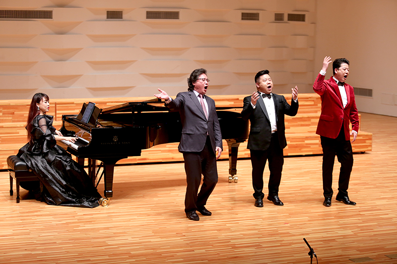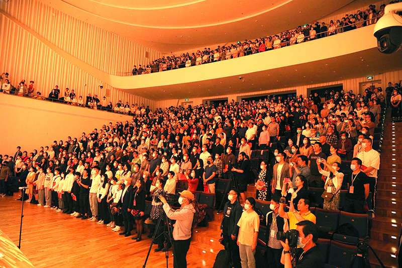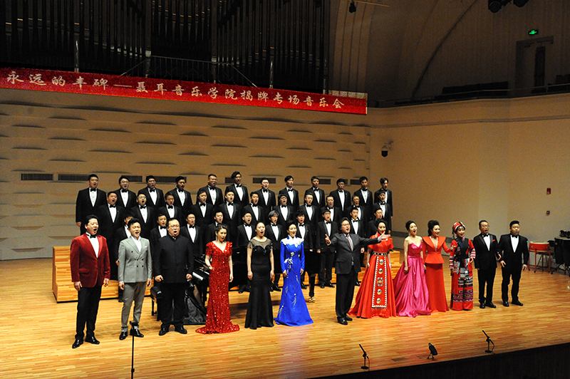 戴玉强教授带领爱乐男声合唱团演唱国歌《义勇军进行曲》拉开音乐会帷幕。我国著名小提琴演奏家吕思清,知名歌唱家黄瀞瑶、李鳌、孔庆学,云南省青年表演艺术家李怀秀、李怀福以及beat365官方网站优秀教师为观众带来了一场高艺术水准的音乐盛宴,开启了聂耳音乐学院建设发展之路。