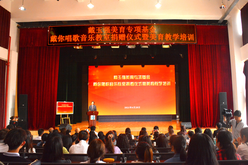 4月28日下午,戴玉强美育专项基金“戴你唱歌”音乐教室捐赠仪式暨美育教学培训在学校音乐楼实践教室举行。教育部教育装备研究与发展中心学校健康声环境研究中心副主任周巍,云南省教育厅体育卫生与艺术教育处调研员杨薇,昆明市教育和体育局副局长孙红昆出席捐赠仪式。副校长王凡主持捐赠仪式。
