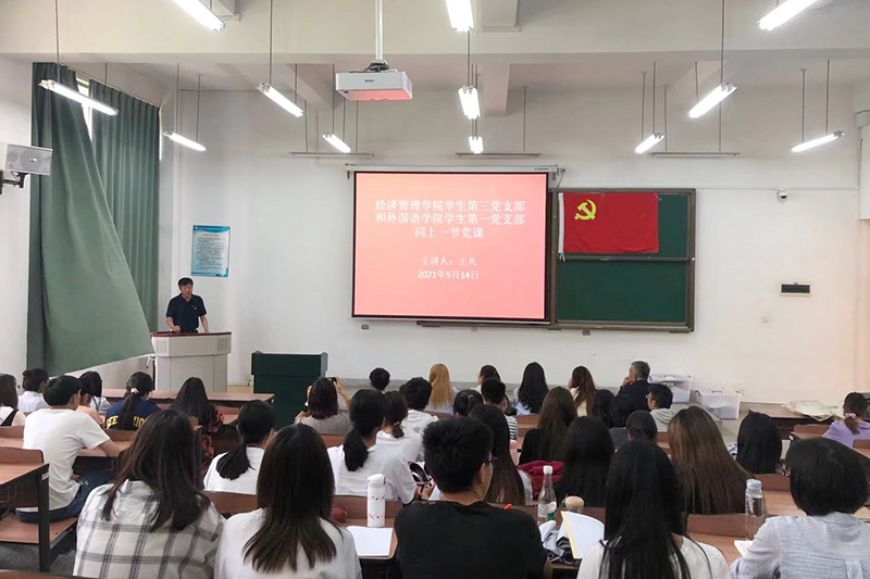 5月14日,党委委员、副校长王凡在博雅楼3104教室为经济管理学院、外国语学院讲主题党课并开展主题党日活动。
