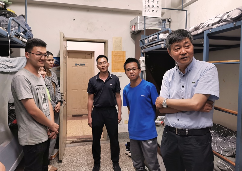 6月17日,学校副校长王凡到外国语学院澄明苑男生宿舍察看宿舍安全,与学生座谈交流,就同学们的职业规划、就业、考研、学习目标等方面分享了经验,给予了意见建议。