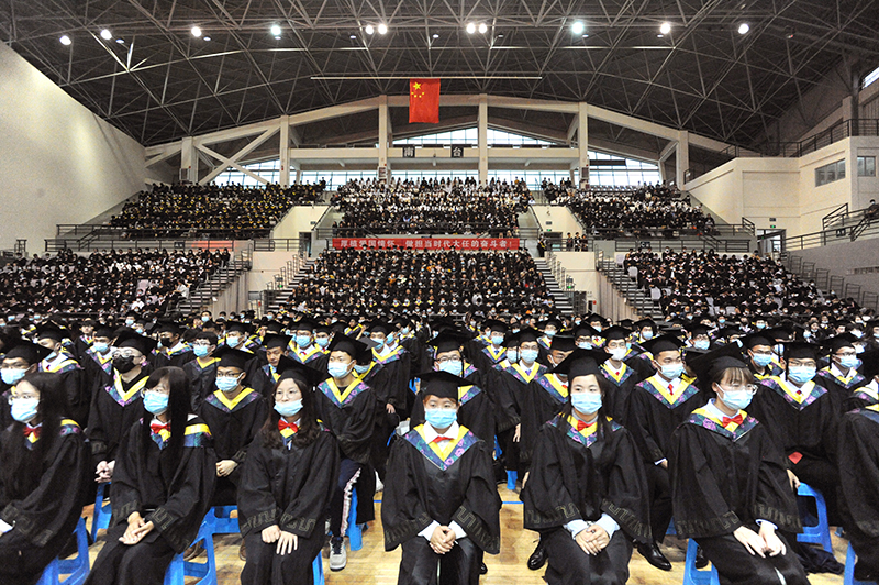 金幼和书记强调,今年4月19日,习近平总书记考察清华大学时强调:“当代中国青年是与新时代同向同行、共同前进的一代,生逢盛世,肩负重任”“广大青年要肩负历史使命,坚定前进信心,立大志、明大德、成大才、担大任,努力成为堪当民族复兴重任的时代新人,让青春在为祖国、为民族、为人民、为人类的不懈奋斗中绽放绚丽之花”。在“两个一百年”交汇之际,同学们顺利完成学业,走向广阔的人生舞台,可谓躬逢盛世,大有可为。希望同学们在未来的人生道路上,坚定信仰跟党走,从党史、新中国史、改革开放史、社会主义发展史中汲取营养和智慧,不断增强历史定力,增强做中国人的志气、骨气、底气,争当新时代中国特色社会主义事业的奋进者、开拓者、奉献者。