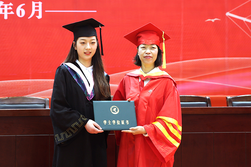 典礼上,金幼和书记、丁文丽校长为提前毕业研究生颁发毕业证书及校长奖学金。