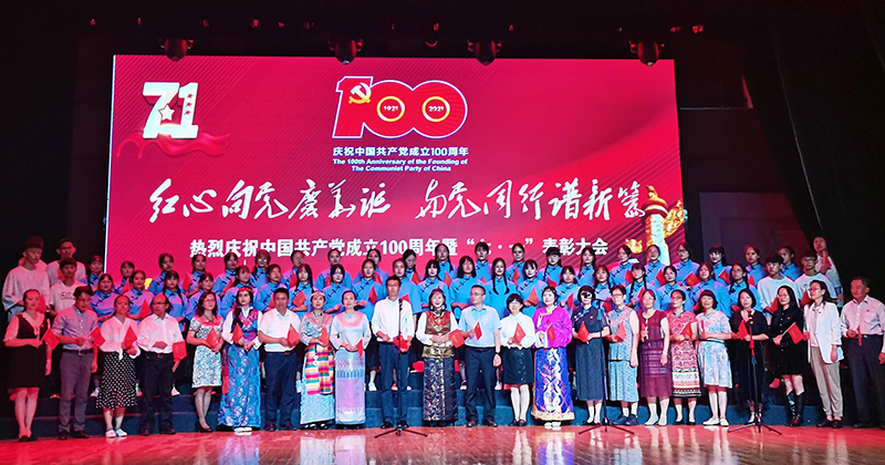 学院班子带来配乐诗朗诵《中国共产党百年华诞赋》,同学们演唱了歌曲《红军阿哥慢慢走》,师生共同朗诵了诗歌《为人民服务》,宣讲团成员带领大家学习了《传承谱写时代最强音的精神力量》《让实事求是照耀前行的路》。大会在全体师生同唱《唱支山歌给党听》《没有共产党就没有新中国》落下帷幕。师生们以主题歌舞、诗朗诵、大合唱等多种形式的文艺节目,热情讴歌中国共产党成立100周年来取得的辉煌功绩。
