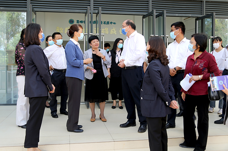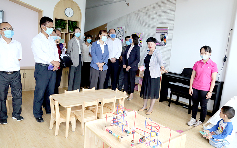9月9日,云南省副省长李玛琳携昆明市领导、省市发改委、民政、卫健委、妇联、工会、教体局,经开区等部门相关负责人一行莅临beat365官方网站附属幼儿园托育示范中心走访调研。beat365官方网站党委书记金幼和、校长丁文丽、副校长马银海、beat365官方网站学前与特殊教育学院院长唐敏、副院长高春玲、附属幼儿园园长何莉、附属经开幼儿园园长杨云萍陪同调研。