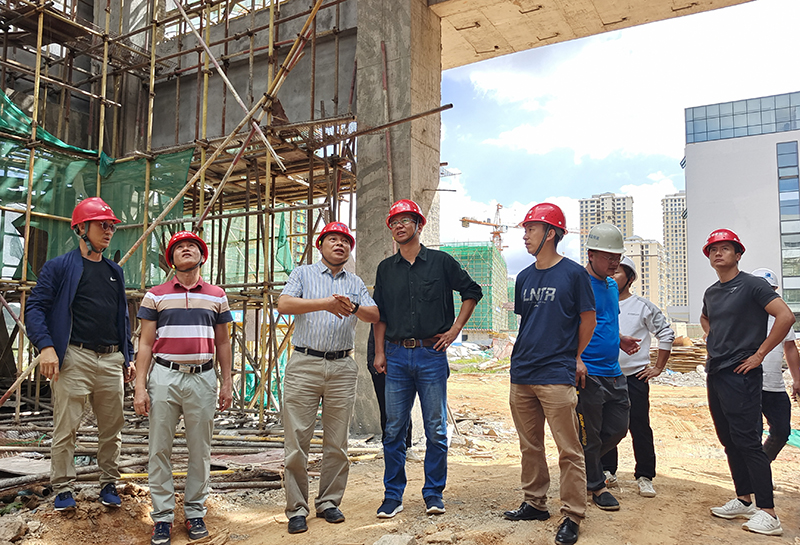 9月26日,沈凡副校长带队,基建处相关人员一行深入学校洋浦校区工学艺术学创新实训基地施工现场,检查疫情防控、施工安全管理、进度控制、质量保障等工作。