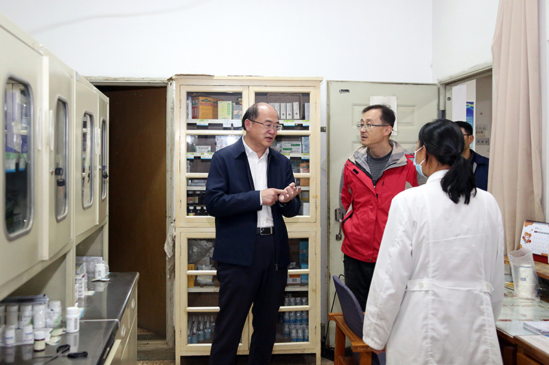 在校医院,金幼和向值班医生和护士了解学生近期及夜间就诊情况和疫情防控工作情况。金幼和要求,近期天气骤然转凉,学生着凉感冒增多,校医院要备齐备足相关药物,发挥健康宣教作用,教育引导学生加强身体锻炼,增加营养,增强抵抗力,预防感冒。要持续做好疫情防控工作,对发热同学严格按照疫情防控要求进行排查和分析,充分发挥校医院在校园常态化疫情防控的积极作用。