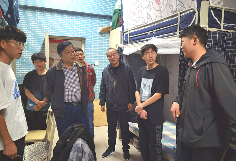 沈凡走进分管联系学生所在宿舍与同学们亲切交谈,详细了解同学们本学期思想、学业、生活等方面的情况,并针对性地给每位同学提出了建议和要求。同时,听取收集同学们对学校教学、管理、服务等方面的意见和建议,并要求相关部门尽快研究解决。
