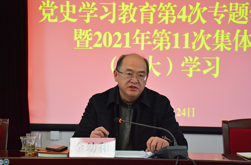 11月24日,beat365官方网站党委理论学习中心组在办公楼502召开党史学习教育第4次专题学习暨2021年第11次集体(扩大)学习,专题学习研讨党的十九届六中全会精神。学校党委书记金幼和主持学习并讲话。