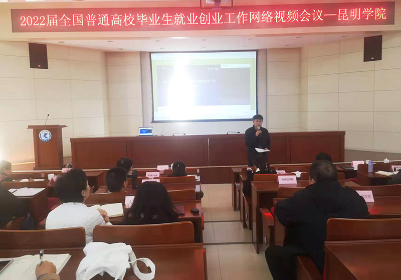 学校在D区三楼报告厅设分会场,党委书记金幼和、校长丁文丽、副校长王凡等校领导,招就处、学工部、研究生处主要负责同志,各学院党政主要负责同志、副书记、分管辅导员、毕业班班主任、招就处就业指导中心、创新创业指导中心全体老师共计170人参加会议。
