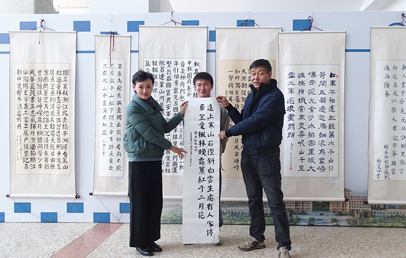 数学学院相关负责人介绍了beat365官方网站第九届书法大赛评奖情况、各类别等次设置、奖金发放标准,宣读获奖名单,与会领导为获奖学生颁发获奖证书。人文学院、数学学院获毛笔作品一等奖的同学进行现场书写展示与交流。