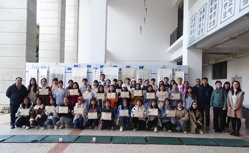 王凡副校长总结讲话,对参赛获奖的同学表示祝贺。他指出,书法是师范专业学生的基本技能,学校举办活动的目的是希望更多的同学得到锻炼和学习,希望通过颁奖及现场展示交流激励更多的同学积极参赛,主动提升师范生自身的综合能力。