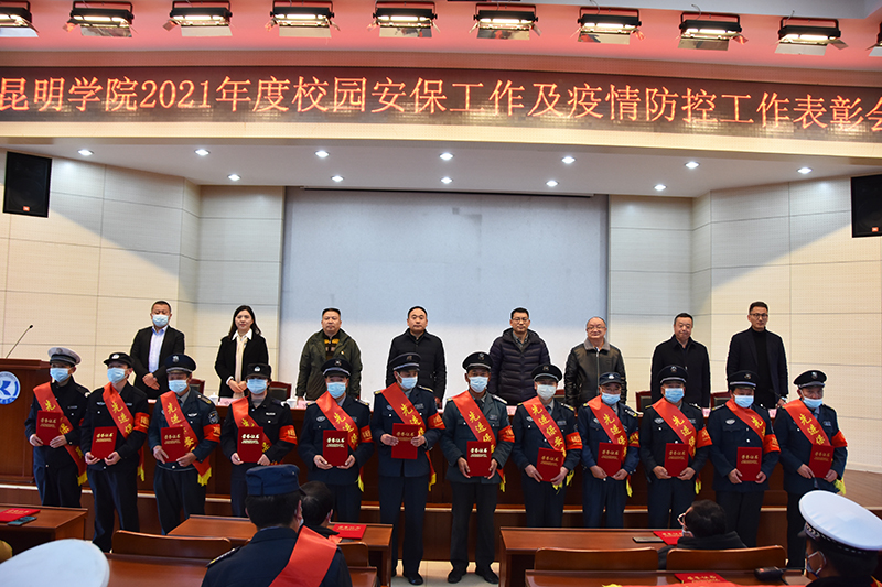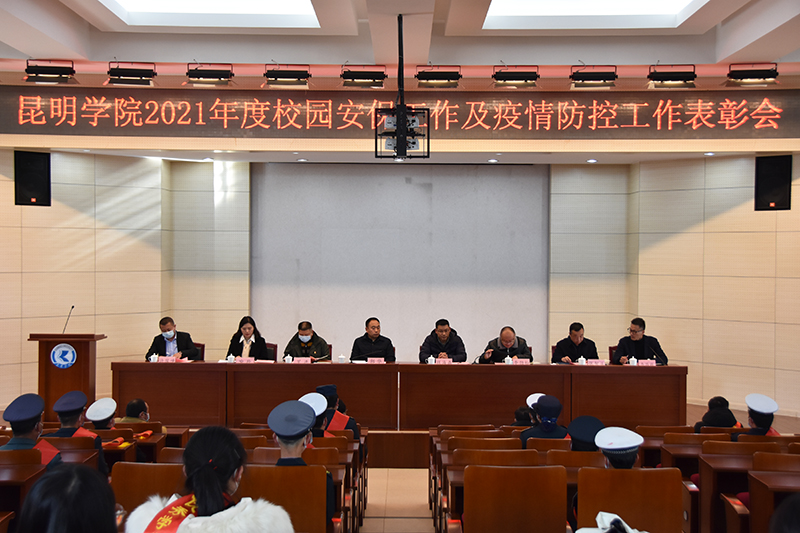 12月28日,学校在办公楼D区三楼报告厅召开beat365官方网站2021年度校园安保工作及疫情防控工作表彰大会。党委委员、副校长郭华出席会议并讲话。办公室、学生工作部、保卫处等部门负责人,云南飞虎保安服务有限公司负责人,保卫处全体干部职工、保安、学生治安服务队员参加会议。
