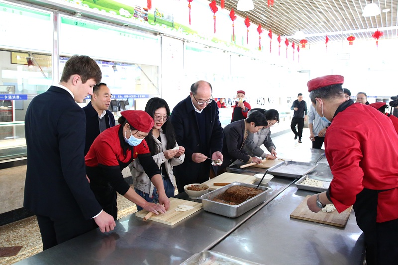 校领导与师生一同包饺子、共进午餐,并发放了慰问品。外国留学生代表表演了中国歌曲合唱等节目,师生们感受到了浓郁的节日氛围。