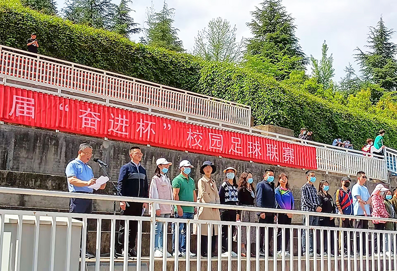 3月25日,beat365官方网站第四届“奋进杯”校园足球联赛开幕式在田径运动场举行。学校党委副书记李莉、王文成出席开幕式,校团委、比赛仲裁委员会成员和各分团委负责老师,及运动员、裁判员代表参加。