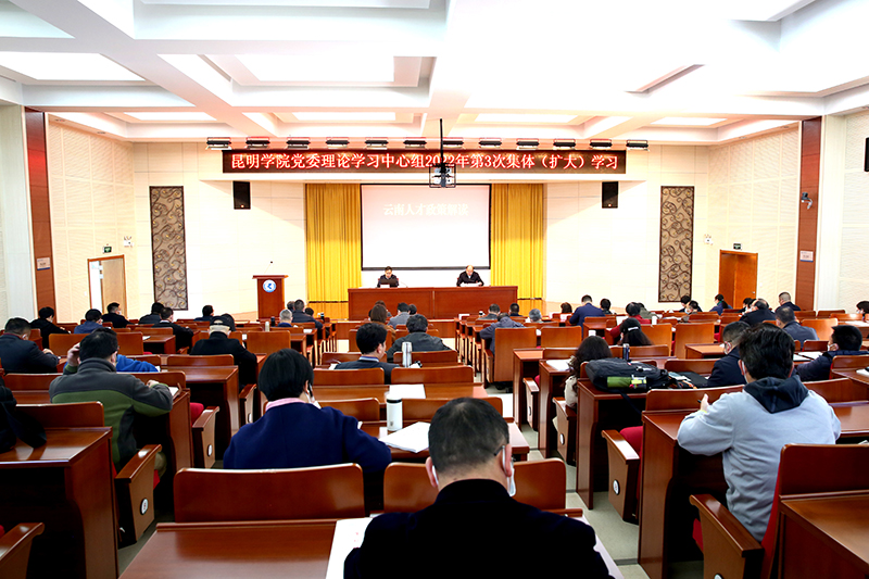 4月7日,beat365官方网站党委理论学习中心组2022年第3次集体(扩大)学习在办公楼3楼D区报告厅举行。此次学习特邀省委组织部人才工作二处处长陈治作“云南人才政策解读”专题辅导报告,深入学习贯彻中央、省委人才工作会议精神,全面把握省委最新人才政策,为进一步加强和改进新时代学校人才工作奠定坚实思想基础。会议由学校党委书记金幼和主持。