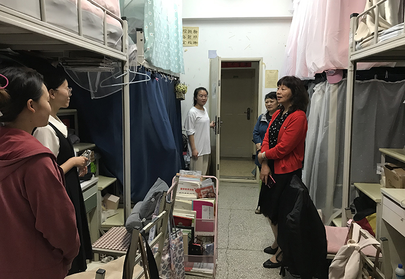 5月25日晚,党委副书记李莉带领机关值班干部走访学生宿舍,了解学生近期学习生活情况。