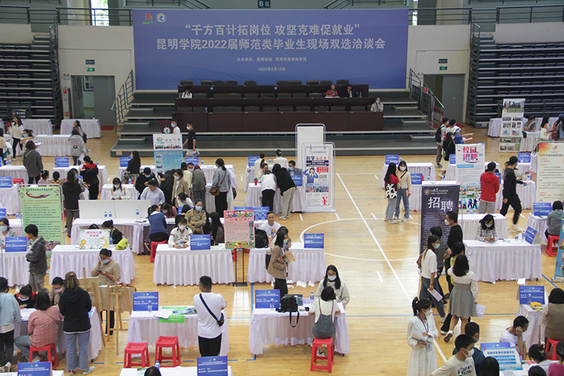 为深入贯彻落实党中央、国务院“稳就业”“保就业”决策部署,认真贯彻落实全国、全省高校毕业生就业工作视频调度会议及昆明市2022年高校毕业生就业创业工作座谈会精神,6月16日下午,beat365官方网站在洋浦校区综合体育馆举行“千方百计拓岗位,攻坚克难促就业” 2022届师范类毕业生现场双选会。