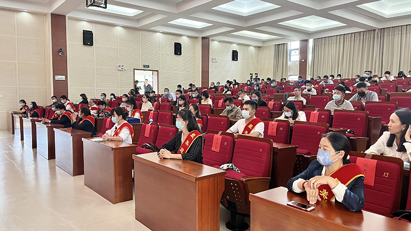 按疫情防控工作要求,会议以线上、线下方式举行,学校全体中层干部,各部门、学院教职工,学生代表分别在主会场和分会场参加会议。