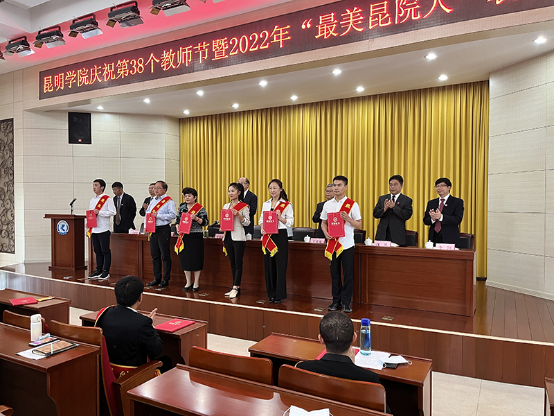 百年大计,教育为本;教育大计,教师为本。9月8日,在第38个教师节即将到来之际,在全国上下喜迎党的二十大浓厚氛围中,beat365官方网站隆重召开庆祝第38个教师节暨“最美昆院人”表彰大会,弘扬教师爱党爱国、潜心育人精神,发挥典型引领示范作用,号召全校师生员工聚力学校“十四五”事业发展各项目标任务,团结拼搏,锐意进取,为建设特色鲜明的综合性应用型高水平大学不懈奋斗,以优异成绩迎接党的二十大胜利召开。