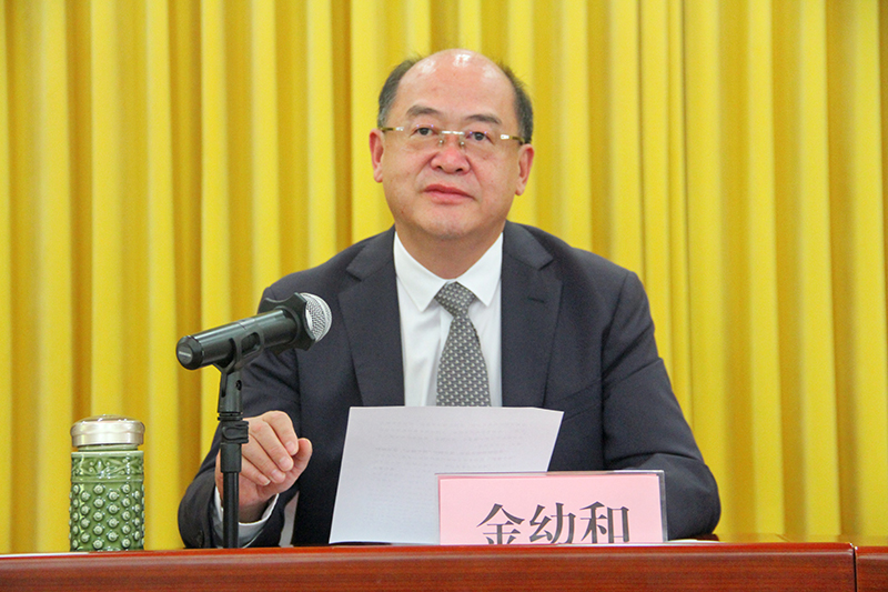 学校党委书记金幼和出席会议并讲话,党委副书记、校长丁文丽主持会议,全体在家校领导出席。