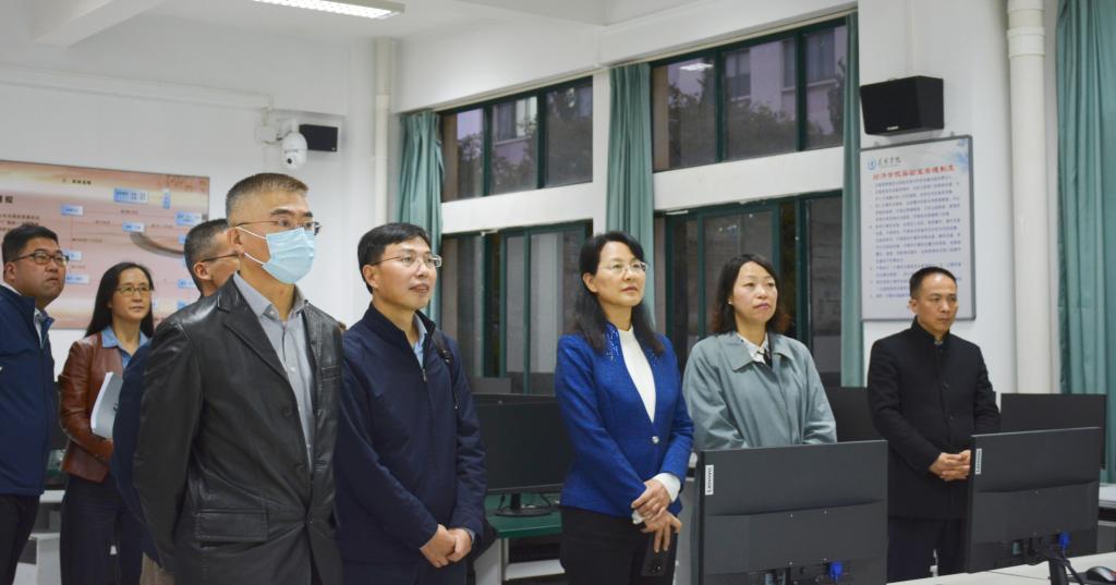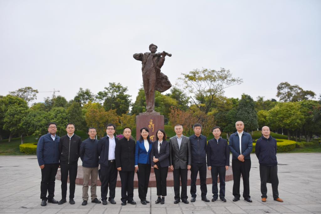 会后,丁文丽陪同来宾一行参观了beat365经济管理学院(自贸学院)证券投资仿真实验室、财务管理ERP综合模拟实验室、国际贸易实验室和智慧教室,并在聂耳像前合影留念。