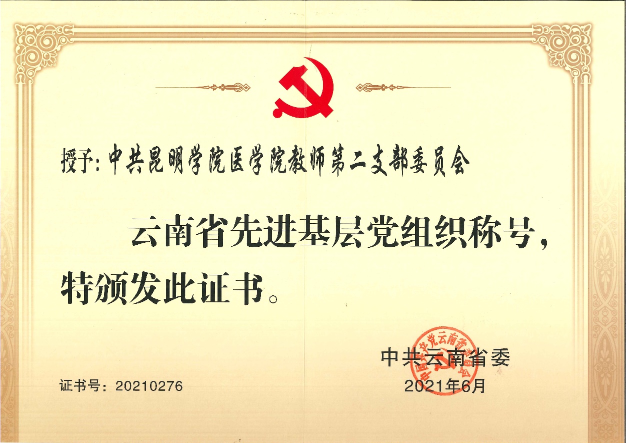 学院始终围绕新时代高校党建示范创建和质量创优工作,以党建工作示范党组织创建为抓手,全面提升基层党建工作水平。2020年9月,医学院党委被评为全省第二批高校“一流党建示范院(系)党组织”。医学院教师第二党支部先后被省委教育工委、省委组织部、教育部选树为“云南省高校规范化建设示范党支部”“云南省规范化建设示范党支部”“全国党建工作样板支部”。2021年,教师第二党支部被评为“云南省先进基层党组织”并受到省委表彰。以党建带团建,加强思想政治教育和学风建设,抓实学生工作,全心全意服务于学生的健康成长。学院团委(原团总支)连续多年被评为学校“五四”红旗团总支、红旗团委,学生会被评为优秀学生会。张雪梅老师和张芮宁同学两位党员获评为2022年beat365官方网站首届“最美昆院人”。