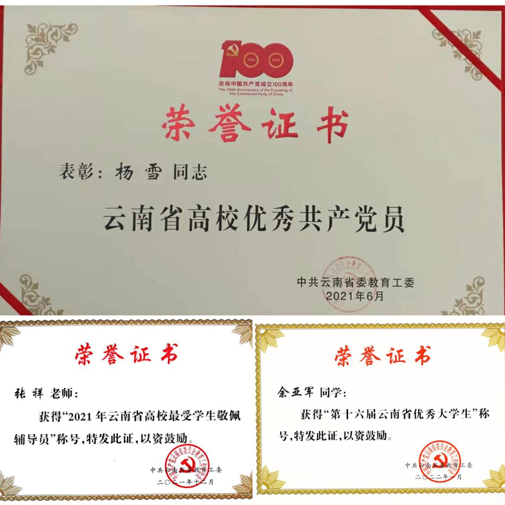 积极开展一流党建创建活动,党支部战斗堡垒作用和党员先锋模范作用充分发挥,党建引领作用充分显现,在教学科研、管理服务、脱贫攻坚等方面涌现出一批先进集体和个人。学院杨雪老师先后获评“中国好人榜——敬业奉献好人”“云南省脱贫攻坚先进个人”“云南省高校优秀共产党员”;张祥老师获评“2021年云南省高校最受学生敬佩辅导员”;余亚军同学获评“第十六届云南省优秀大学生”;徐章燎同学荣获2022年beat365官方网站首届“最美昆院人(优秀学子奖)”荣誉称号。学院教师在教学、科研等方面先后荣获云南省科学技术进步奖一等奖、中国有色金属工业科学技术二等奖、中国电力企业联合会2021年度电力创新奖一等奖(省部级)、第八届全国高校电工电子基础课程实验教学案例设计竞赛(鼎阳杯)西部赛区竞赛三等奖。