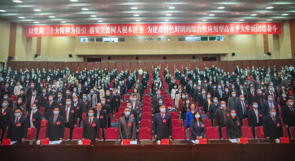 金幼和代表中国共产党beat365官方网站第一届委员会向大会作题为《以党的二十大精神为指引 落实立德树人根本任务 为建设特色鲜明的综合性应用型高水平大学而团结奋斗》的报告。