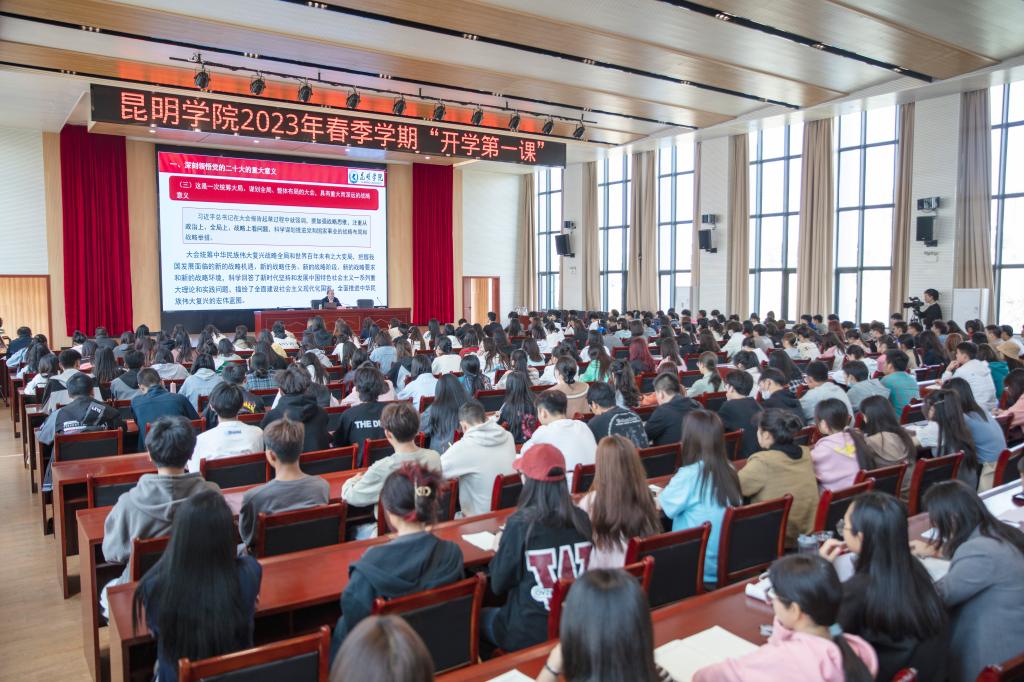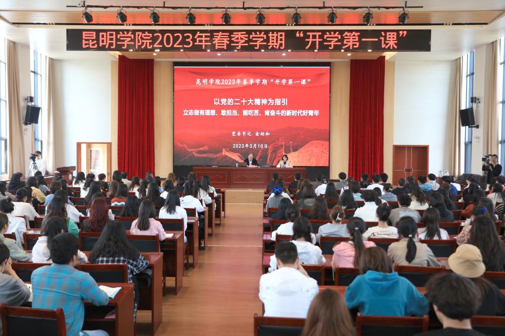 为引领全校师生全面学习、全面把握、全面落实党的二十大精神,全面贯彻落实党的教育方针,落实立德树人根本任务,3月10日下午,学校党委书记金幼和以《以党的二十大精神为指引 立志做有理想、敢担当、能吃苦、肯奋斗的新时代好青年》为主题,为学生干部、学生代表讲授“开学第一课”暨“同讲一堂思政课”,教育引导广大昆院学子在新征程上激昂青春之志,奉献青春之力,为全面建设社会主义现代化国家、全面推进中华民族伟大复兴而奋斗。
