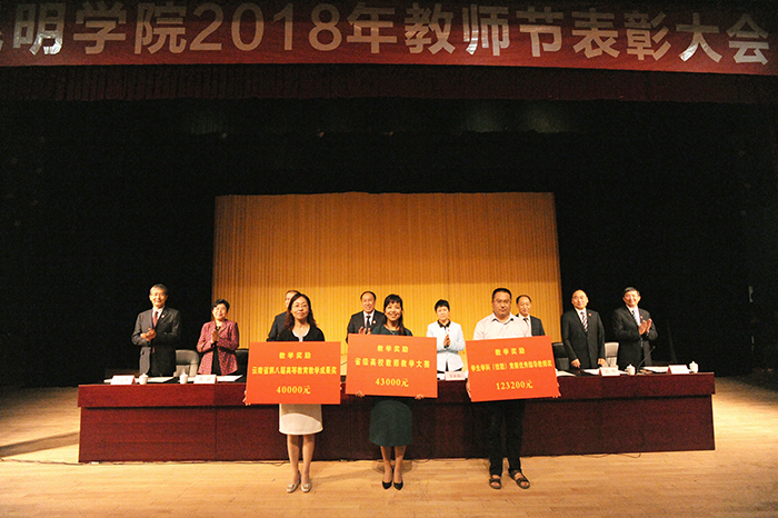 黎素梅校长主持大会总结讲话指出,今天的表彰奖励,是学校党委对教职工为学校发展所做出的突出成绩的认可和肯定;是学校党委尊师重教,树立标杆,激励干事,鼓励先进的导向和态度;是学校共同庆贺2017年学校申硕成功,全国文明单位复审顺利通过,学校成功成为云南省应用型示范高校,临床医学专业成功获批以及教学、科研、专业建设取得的一个又一个新突破、新成就。