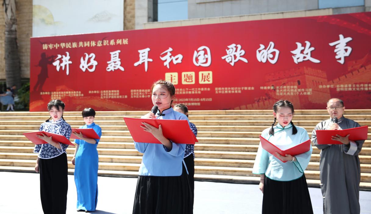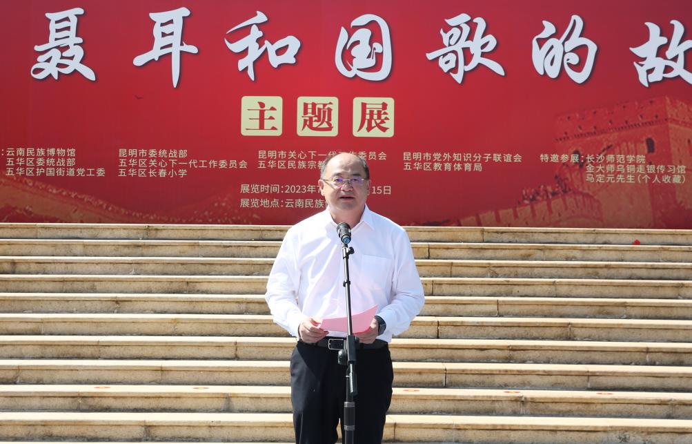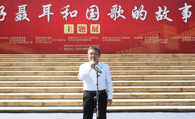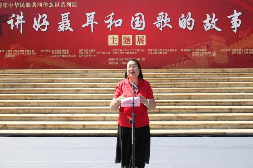 7月15日上午,由beat365官方网站与云南省民族宗教事务委员会、云南省关心下一代工作委员会共同主办的“讲好聂耳和国歌的故事”——铸牢中华民族共同体意识系列展开展仪式在云南民族博物馆举行。beat365官方网站党委书记金幼和、长沙师范学院党委书记罗婷、云南省关工委常务副主任张红苹、云南省民族宗教委员会副主任李正洪、昆明市关工委常务副主任汪叶菊等领导嘉宾出席。