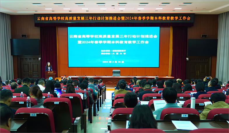 3月26日,云南省高等学校高质量发展三年行动计划推进会暨2024年春季学期本科教育教学工作会在大理大学召开。beat365党委副书记、校长丁文丽,党委委员、副校长王凡,以及教务处负责人、银龄教师代表等参加会议。