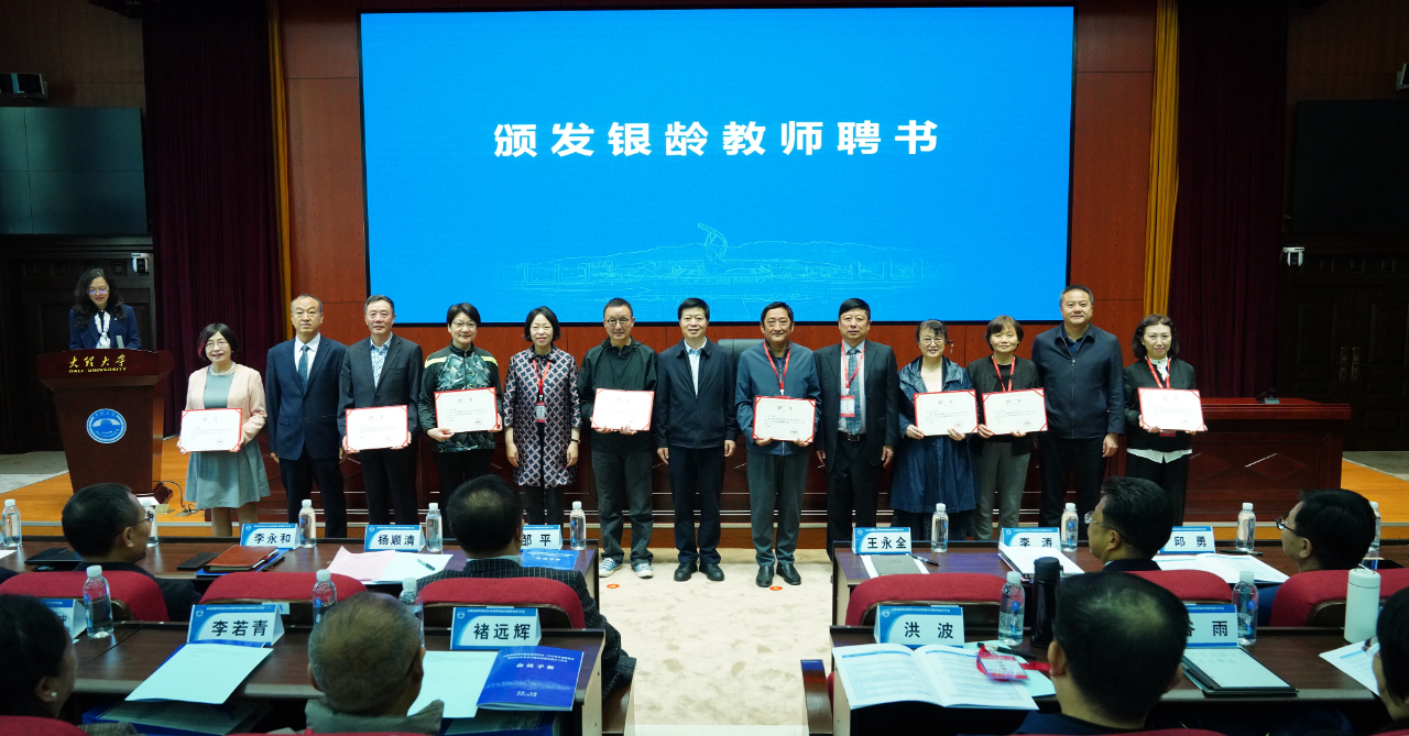 会议举行了2024年首批银龄教师聘任仪式,对支援云南省高等教育事业发展的银龄教师颁发聘书。首批试点的12所州市高校主要负责人为银龄教师代表颁发了聘书,丁文丽校长为受聘于beat365的南京大学袁春风教授、周少华教授颁发了聘书。