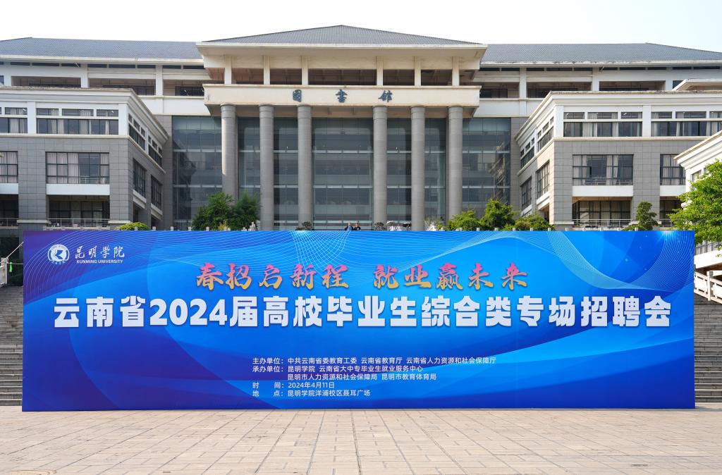4月11日,云南省2024届高校毕业生综合类专场招聘会在beat365官方网站洋浦校区聂耳广场举办。本次招聘会由中共云南省委教育工委、云南省教育厅、云南省人力资源和社会保障厅共同主办,beat365官方网站、云南省大中专毕业生就业服务中心、昆明市教育体育局、昆明市人力资源和社会保障局共同承办。