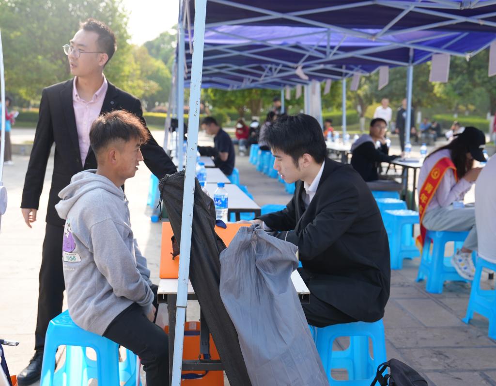 招聘会现场,同学们积极与参会单位沟通交流,深入了解企业需求和岗位招聘条件等相关信息。