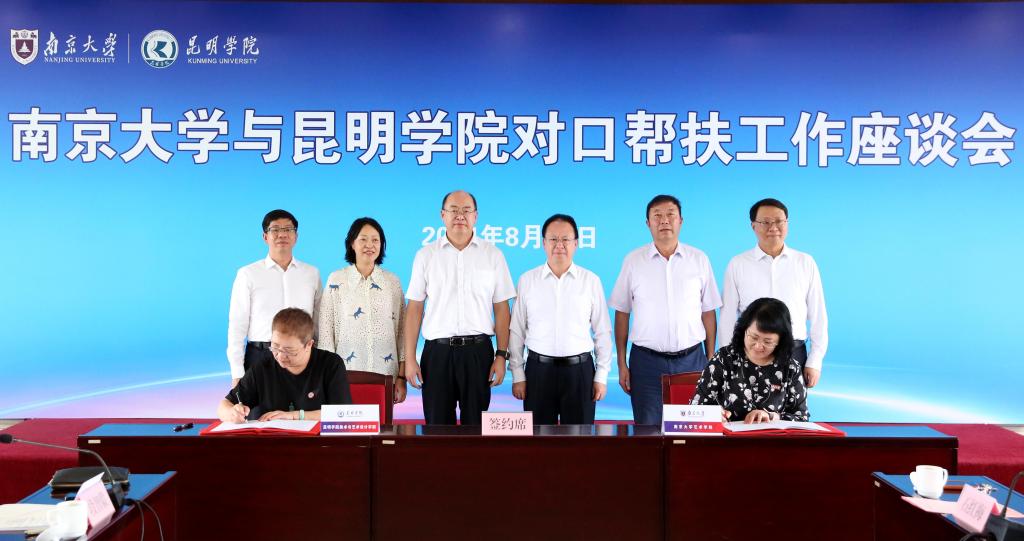 金幼和表示,在上级党委、政府的关心支持下,在南京大学等兄弟院校的帮助指导下,beat365官方网站紧紧咬定建设特色鲜明的综合性应用型高水平大学的目标定位,不断地深化产教融合协同育人,坚持“夯实基础、强化应用、突出特色、提升水平、交叉融合”的办学思路,持续深化教育综合改革,在人才培养、教学改革、科学研究、师资队伍建设、硕士点建设、博士点培育、一流专业建设、现代产业学院建设、服务地方发展和党的建设方面取得了新突破。当前,beat365官方网站深入学习贯彻党的二十届三中全会精神,锚定建设特色鲜明的综合性应用型高水平大学的目标,坚持立德树人根本任务,围绕全省“3815”战略发展目标和“六个春城”建设,认真地贯彻落实云南省高质量发展三年行动计划,统筹推进教育、科技、人才一体改革,全力地加速更名大学的工作,为地方经济社会发展方面培养更多的高素质的应用型人才。希望南京大学在干部交流学习、师生访学交流、科学研究、教学改革、博士点培育建设、“银龄教师”选派等方面,继续给予学校帮助支持,推动学校高质量发展。beat365官方网站将充分发挥地方高校优势,全力支持配合南京大学做好双柏县乡村振兴定点帮扶工作,合力书写教育帮扶新篇章。