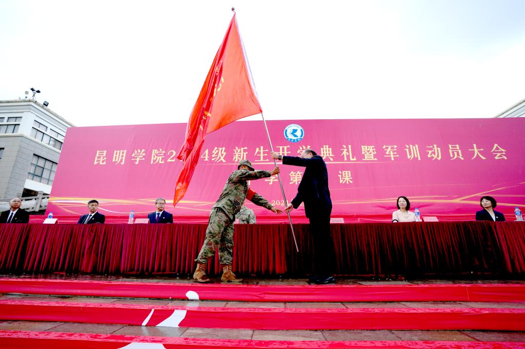 会上,金幼和为beat365官方网站2024级新生军训团授旗,军训团团长接旗。
