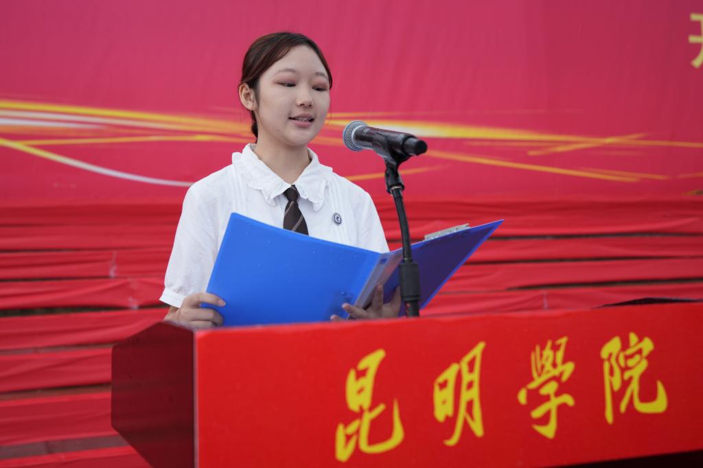 丁文丽校长致辞并作军训动员,向同学们表示热烈欢迎,并介绍了学校的办学历史和发展成就。她勉励新生,要练就“硬”本领,牢记“明德至善,知行利物”校训,打牢专业基础,学以致用、知行并进。要勇敢面对困难,决不放弃。找准人生目标,踏实行动,做到不抛弃不放弃。要不求与人相比,但求超越自己。内外兼修,慎重慎微,展现新时代大学生的青春魅力,展现昆院学子的亮丽风采。