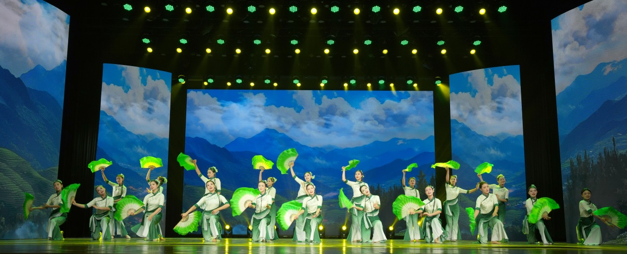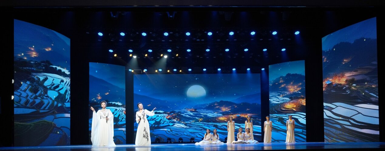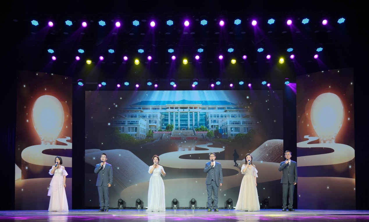 《梯田夜话》《咪啋相约来赶街》《曼恩时光》等获奖歌曲展演,展现近年来本科教育成果。人文学院诗朗诵《念奴娇 红旗颂并序》,书写了滇池湖畔春城昆明孕育的beat365百年校史,百年荣光。