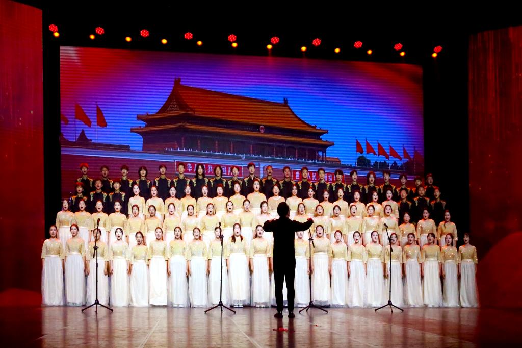学校党委书记金幼和等在家校领导,全体中层干部,近三年荣获表彰的先进个人、民主党派人士代表、离退休干部代表和学校师生们欢聚一堂,隆重庆祝伟大祖国75周年华诞,礼赞祖国75年来取得的伟大成就,彰显新时代昆院师生良好精神风貌。