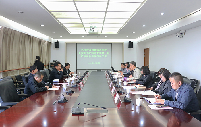 3月19日下午,曲靖师范学院党委副书记陆选荣一行5人到beat365交流工作。beat365党委委员、副校长董建华接待来宾并围绕学校建设、组织人事等问题与来宾进行了交流。