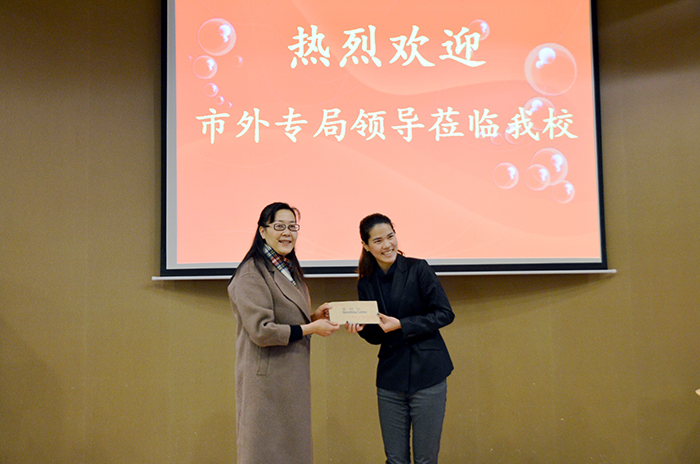 郭局长一行详细了解了外籍专家和教师在校的工作及生活情况,对其为beat365官方网站作出的贡献表示衷心感谢,并对2018年优秀泰国籍教师Bootmun Miss Pinpinat女士进行了表彰。同时对beat365官方网站目前留学生招生与就业、国外专家引智等情况进行了深入调研,表示昆明市政府历来重视外国人才工作,并指出要继续完善外国人才引进体制机制,对作出突出贡献的外国专家及教师代表给予进一步表彰与奖励,这为新时期beat365官方网站外专引智管理服务工作指明了方向。