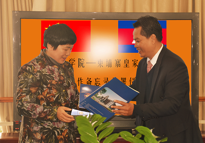 黎素梅校长代表学校欢迎Sok Touch院长一行,高度赞扬中柬两国友谊,全面介绍beat365官方网站的办学定位、专业设置、学校特色等情况。Sok Touch 院长介绍了柬埔寨皇家科学院的历史、部门设置等基本情况。