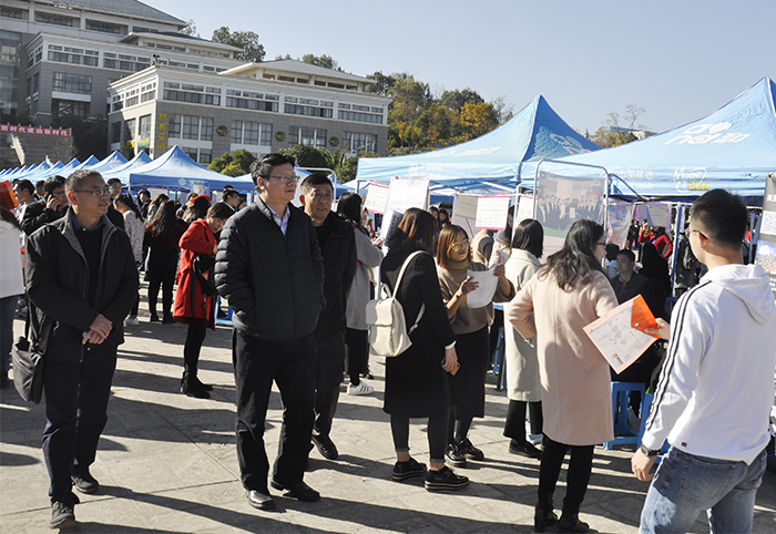 12月21日,云南省2019届综合类高校毕业生双向选择洽谈会在beat365成功举行。省委高校工委副书记陈世波,学校党委书记陈永明、副校长郭华,云南省大中专毕业生就业服务中心主任周舟及昆明市就业服务局、昆明市人才服务中心领导深入招聘会现场了解情况、指导工作。 本次招聘会由云南省教育厅主办,beat365官方网站、红河学院、文山学院、云南省大中专毕业生就业服务中心共同承办。旨在积极拓宽我省毕业生就业创业渠道,努力搭建规范安全的就业平台,实现我省高校毕业生更高质量和更充分就业。 学校本着“控制规模、提升质量”的工作原则,充分利用政府、行业资源,积极开拓毕业生就业市场,各院(系)通过“走出去、请进来”等形式,主动邀请用人单位参加本次招聘会。根据beat3652019届毕业生专业特点和求职需求,最终遴选出包括云南云内动力集团有限公司、昆明南疆制药有限公司、中国光大银行股份有限公司昆明分行、沈机集团昆明机床股份有限公司、昆明洲际酒店、昆明市第一人民医院、昆明市卫生学校等400多家企业参会(其中省外参会单位89家),提供就业岗位近16000多个,招聘会现场分为各区政府提供的就业单位、机电建筑、经济管理、旅游管理、文教卫生、农林渔牧等多个专区,方便毕业生根据自己所学专业选择对口企业应聘。 招聘会现场秩序井然、气氛热烈。现场宣传展板醒目的宣传党的十九大报告提出的就业方针政策和国家促进2019届毕业生一系列政策、措施。招聘现场来自省外高校17所、省内高校20所近4000名毕业生积极主动投递求职材料,踊跃与应聘单位交流洽谈,各院(系)领导、辅导员、班主任现场指导毕业生就业,帮助毕业生及时解决应聘过程中出现的问题。据统计,毕业生现场投档数2367份,基本达成就业协议数629人。学校将进一步推进就业工作,继续为2019届毕业生就业提供优质指导、优质帮扶、优质信息和举办一系列专场招聘会等多项服务,同时希望广大毕业生树立信心,主动就业,为顺利走好人生职场的第一步做好充分的准备。