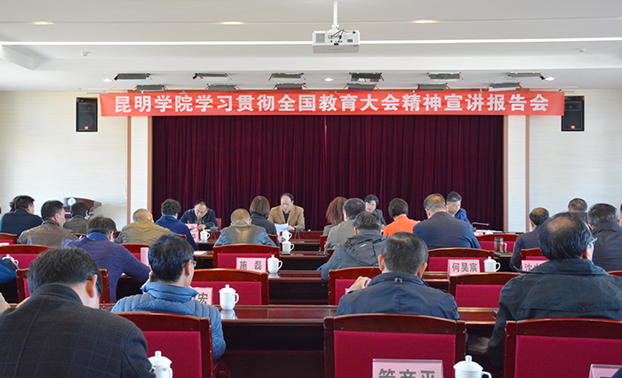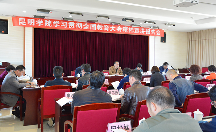 12月21日,学校举行全国教育大会精神宣讲会,云南省教育系统学习宣传贯彻全国教育大会精神宣讲团成员、学校党委书记陈永明主讲,全面阐述全国教育大会召开的重大意义,对深入学习领会习近平总书记关于教育的重要论述提出要求。