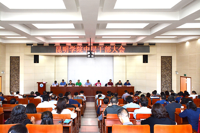 陈永明书记强调,我们要自觉把昆院发展放在全省教育发展大格局中、放在昆明市发展定位的大坐标上来审视、来谋划、来推进。在这个伟大的时代,昆院每一名党员、每一名干部、每一个人都要思考这样一个问题,我们这一任、我们这一代要为昆院创造什么、要为昆院留下什么。目前学校面临难得的发展机遇,各项工作步入正轨并取得良好成效。我们的目标就是要以学校综合改革为龙头,抢抓审核性评估的机遇,抓实教育部授予学校的硕士授予单位和硕士点建设;着力打造应用型转型示范点建设;扎实做好临床医学专业等特色学科建设,不断推进更名大学工作。结合当前的工作,我们应扎实抓好做好本学期的三项重点工作:一是敢于担当抓审核性评估。二是勇于担当抓示范校建设。三是善于担当抓全面综合改革。