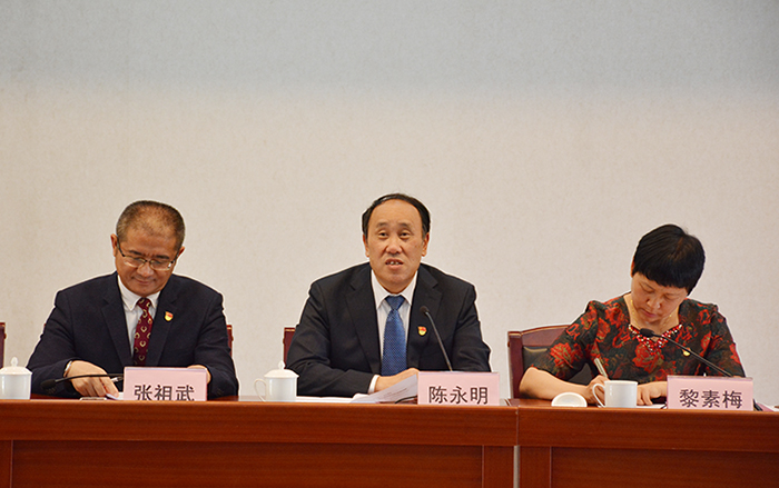 6月28日,beat365官方网站庆祝中国共产党成立97周年大会在办公楼D区三楼报告厅举行。学校党委书记陈永明出席大会并讲话。党委副书记、校长黎素梅,党委副书记张祖武,纪委书记王映平,副校长熊晶、郭华、董建华、沈凡出席大会。